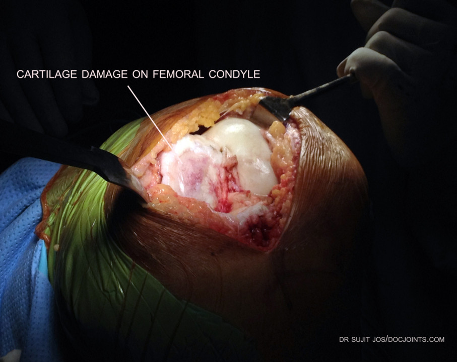 Cartilage damage in an osteoarthritic knee